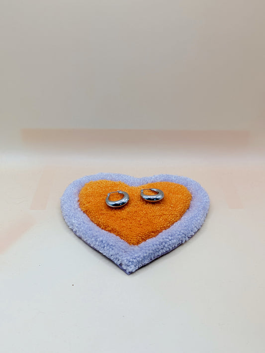 Handmade Purple Orange Heart Shaped Mug Rug – Tufted Heart Coaster for Coffee Lovers | Cute Aesthetic Home Décor Gift