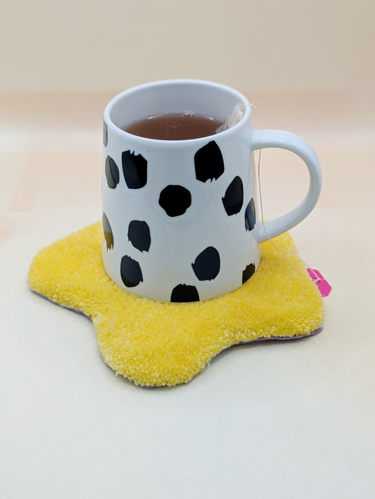 Handmade Yellow Purple Fried Egg Mug Rug – Tufted Fried Egg Coaster for Coffee Lovers | Cute Aesthetic Home Décor Gift