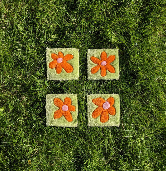 rugs for mugs pastel coloured abstract flower shape orange green coaster