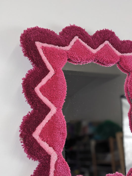 Pink, yellow and red coloured wavy pattern tufted yarn mirror