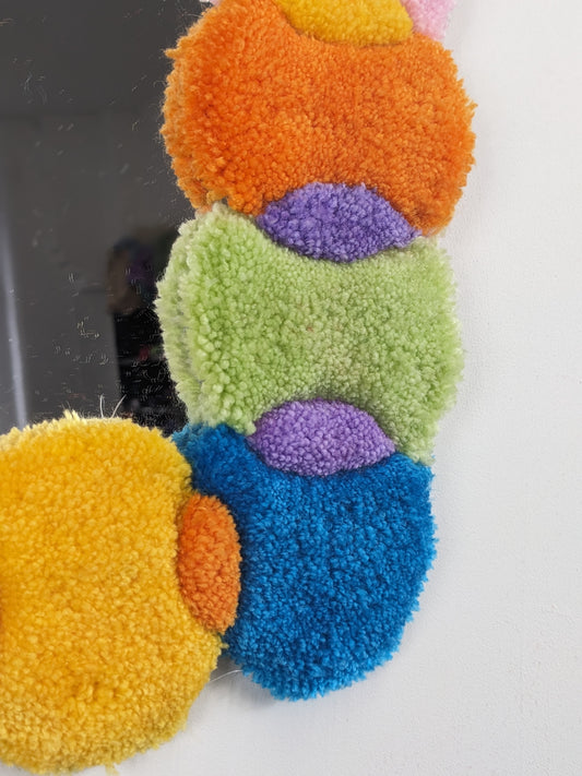 multicoloured pink pastel circle blob shape pattern yarn tufted mirror