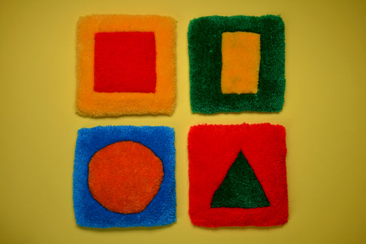 rugs for mugs primary colour geometric shape coasters 4 pack