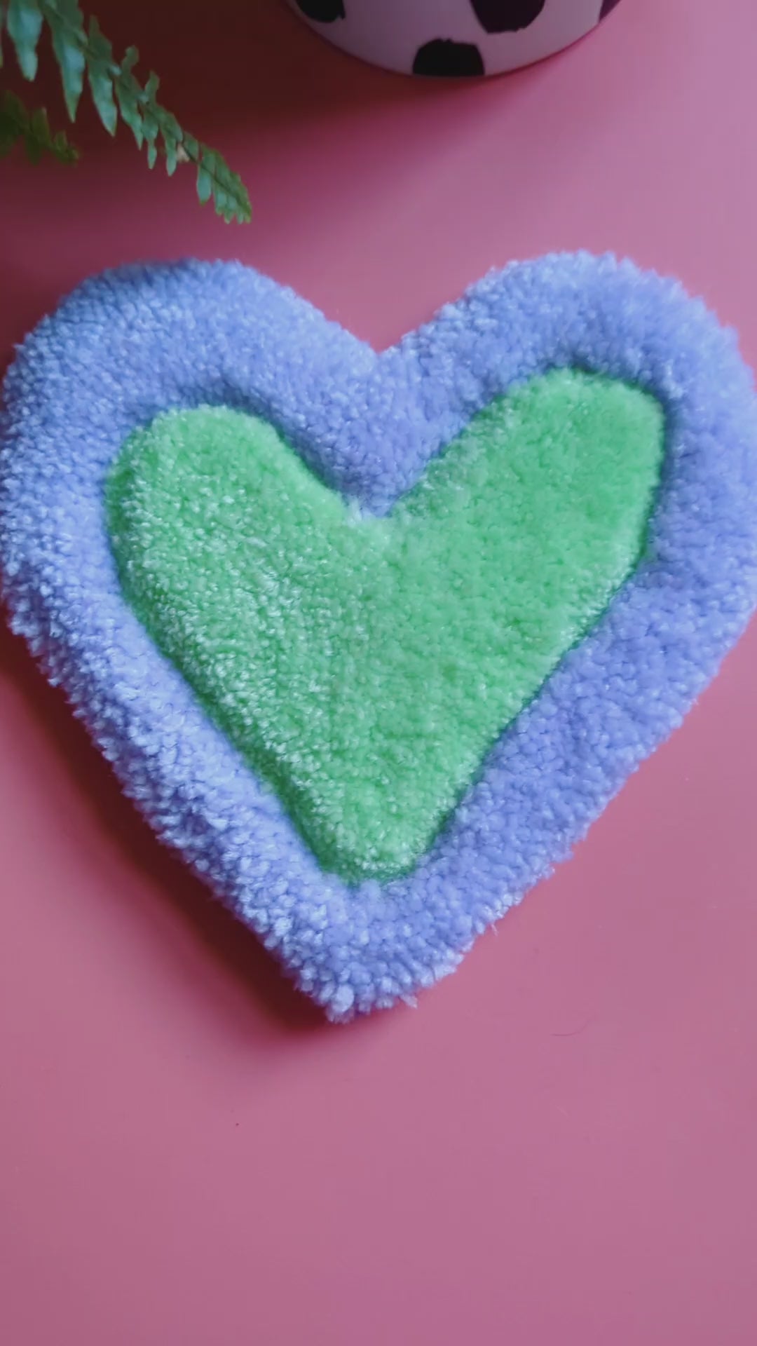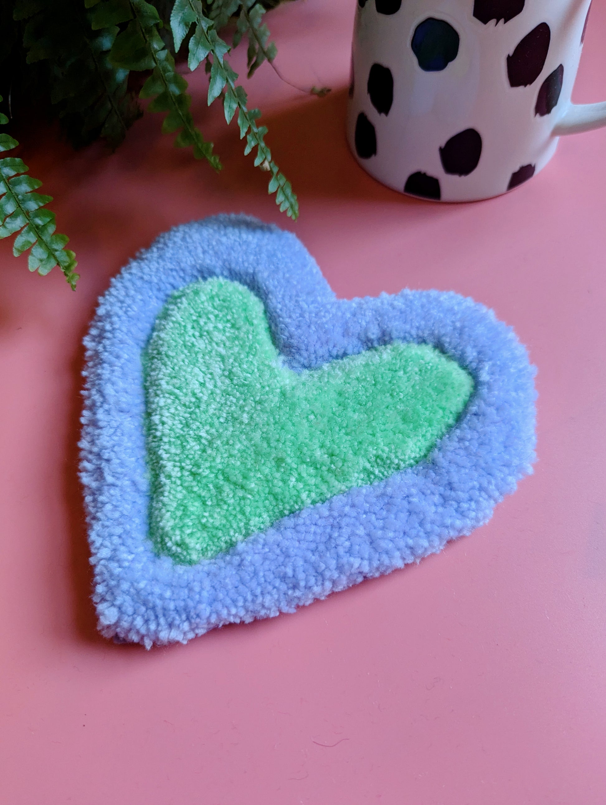 Purple and green love heart shape tufted coaster mini rug mug rug
