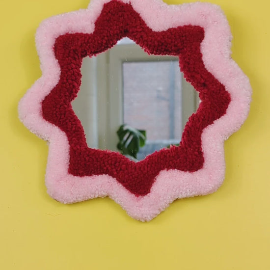 Give your walls the personality they deserve with this hand-tufted, organic wavy shaped mirror—a piece that’s as artistic as it is functional. Its layered pink and red tufted frame brings a fresh, nature-inspired pop of texture and colour, creating a lively contrast against any backdrop.