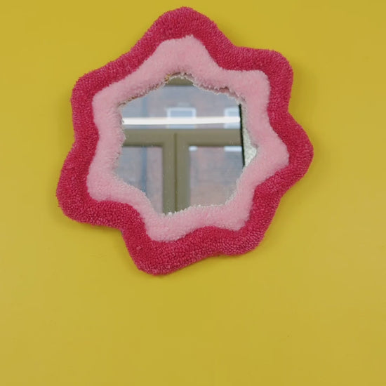 Handmade Wavy Pink Tufted Wall Mirror – Unique Wavy Organic Shape Accent Mirror for Bedrooms, Living Rooms & Creative Spaces