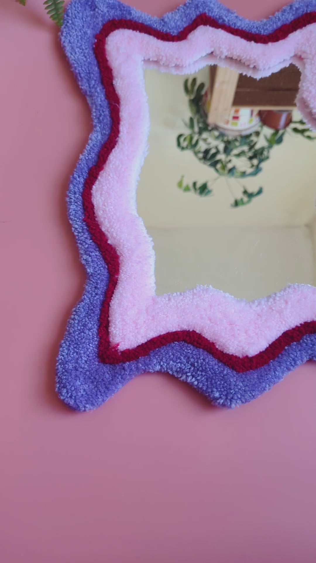 Purple, red and pink coloured wavy pattern tufted yarn mirror
