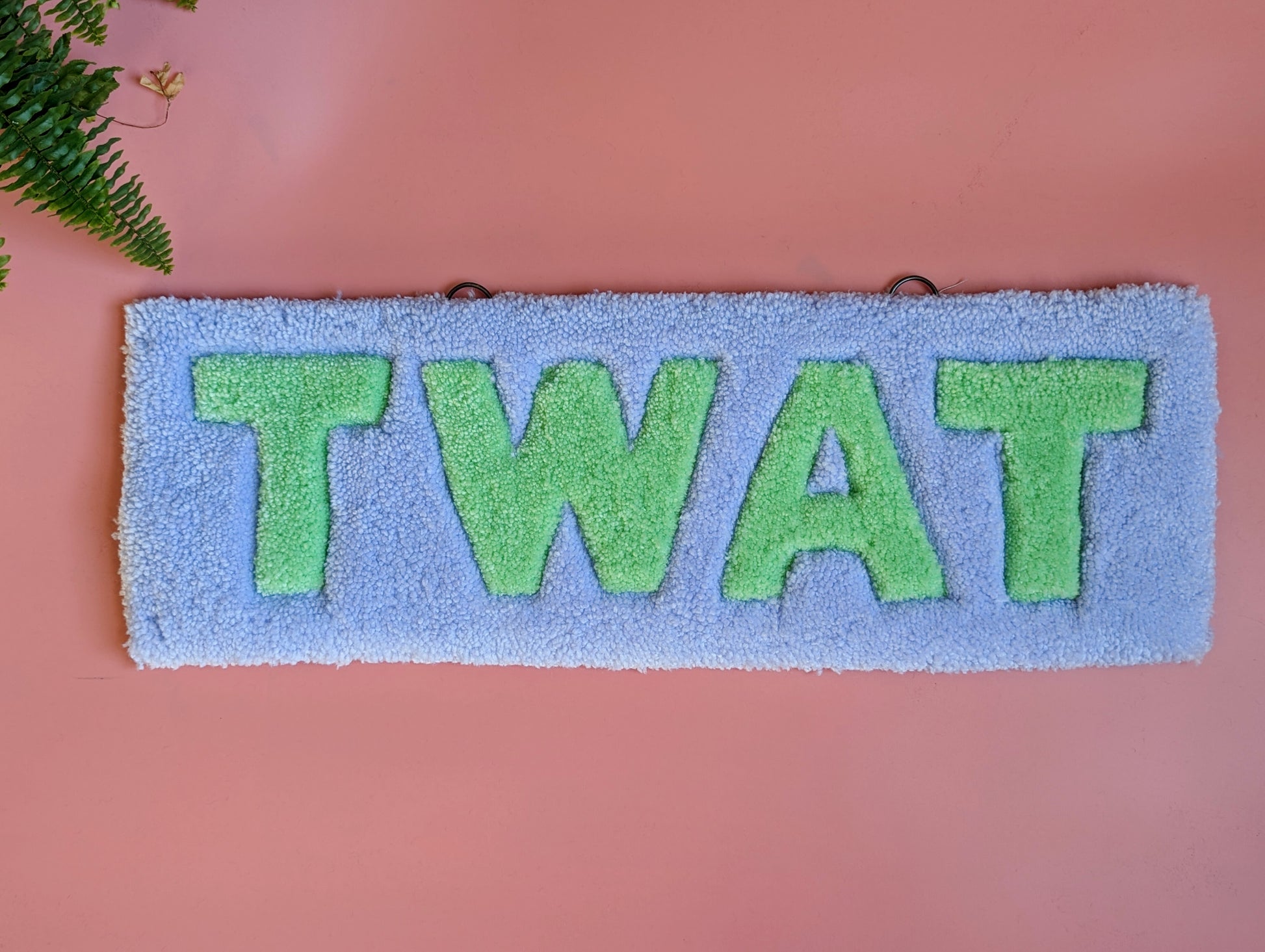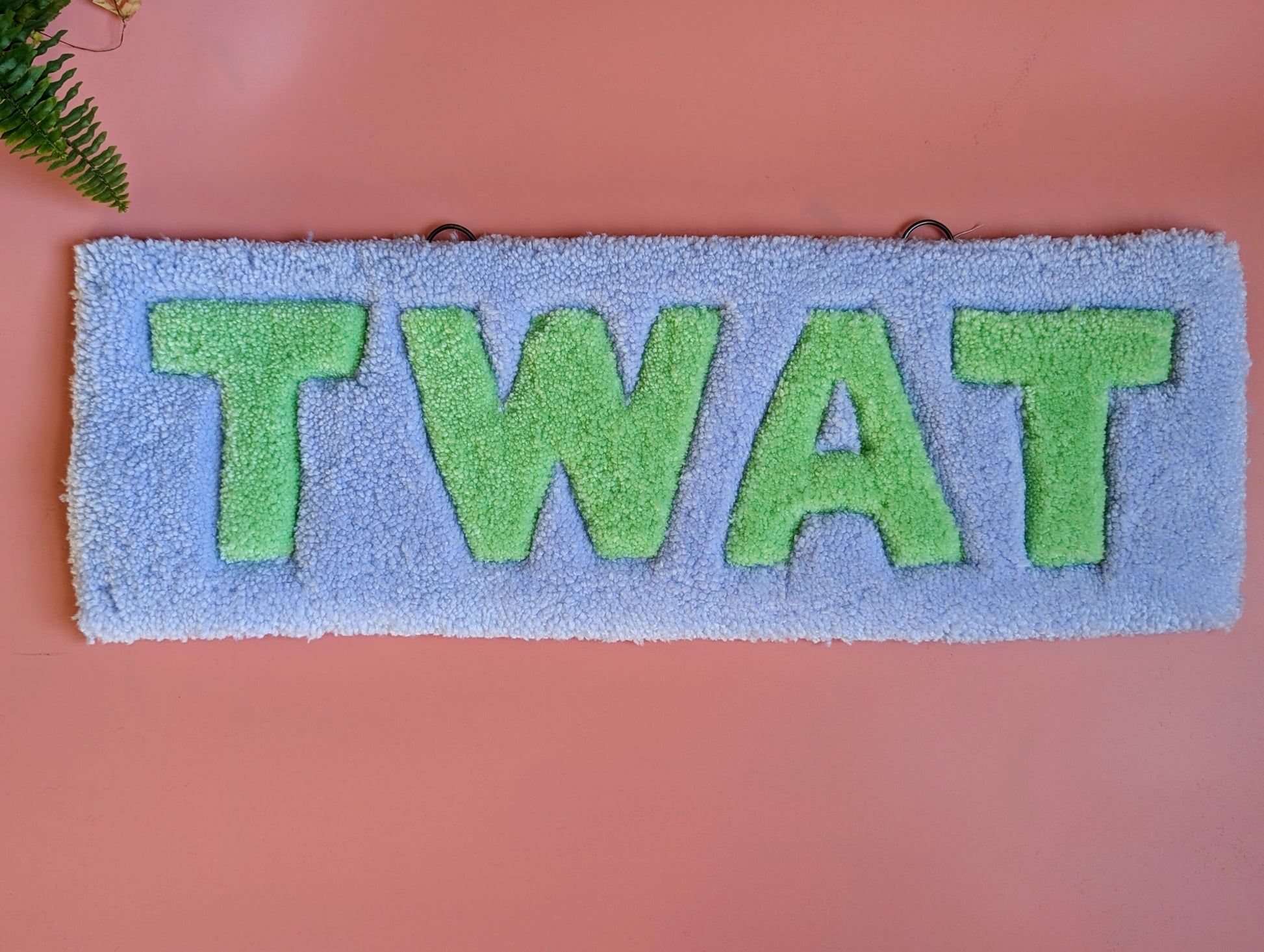 Purple and green tw*t tufted yarn wallhanging rug