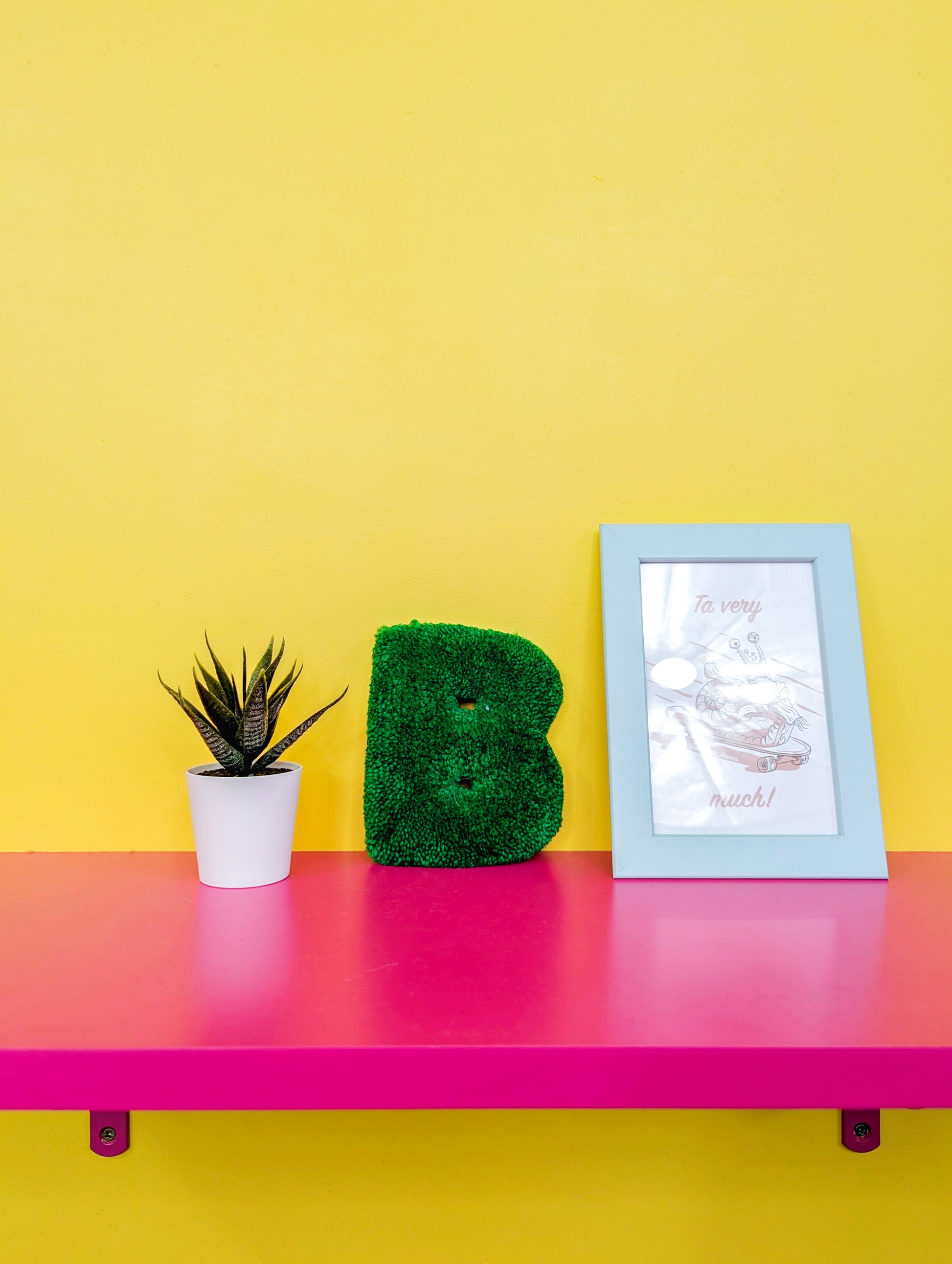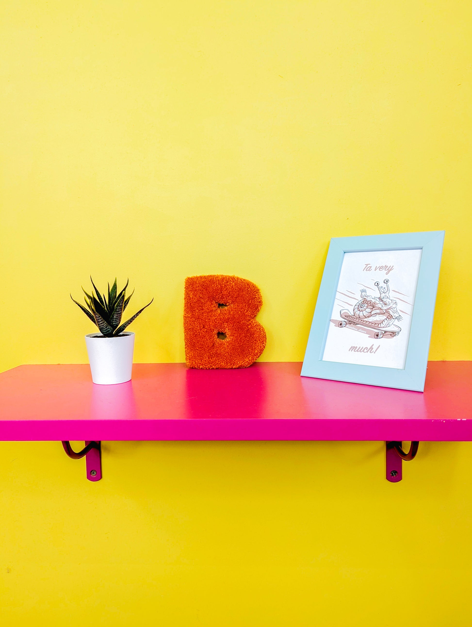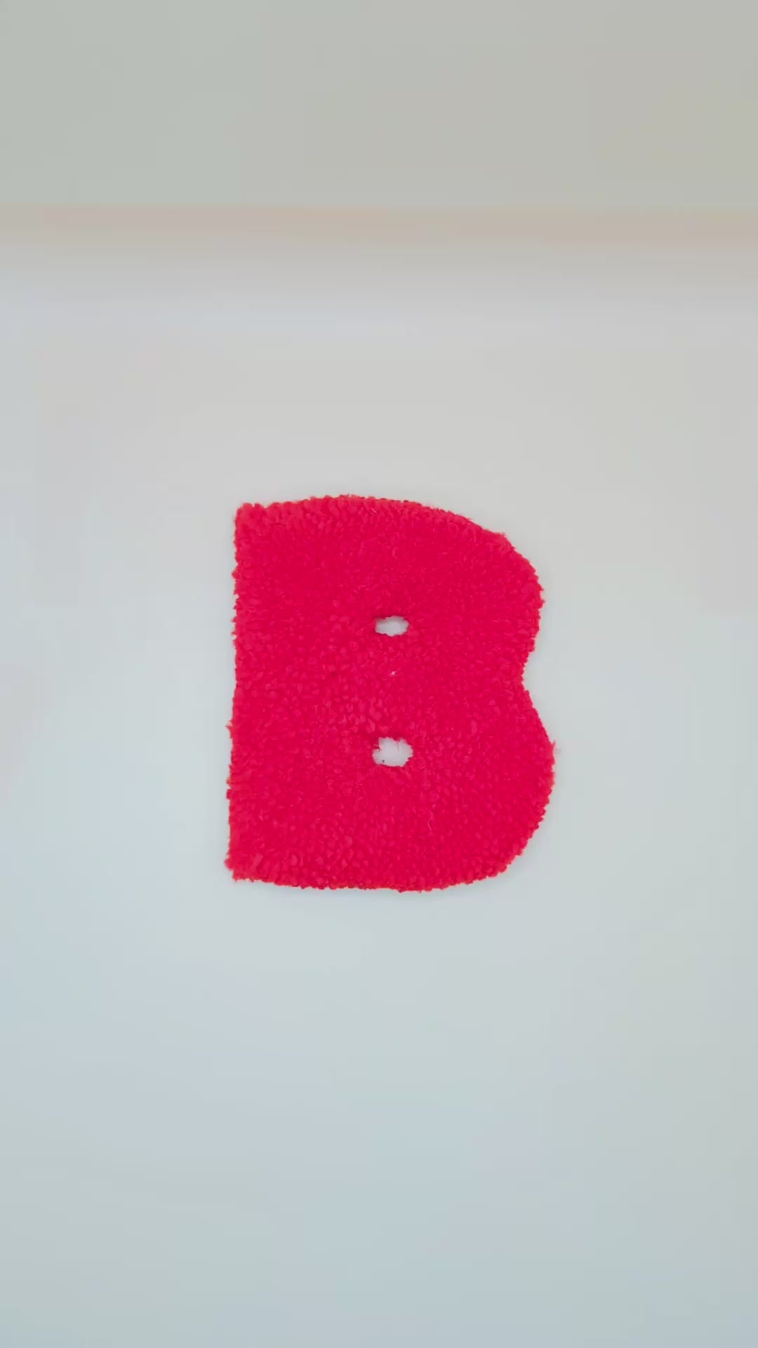 Each letter is created by me using acrylic yarn and tufted into shape; features a soft, plush textured finish and a metal hook on the back for easy hanging. It’s lightweight yet sturdy, making it simple to move and display anywhere you like — from walls and doors to shelves and gallery arrangements.