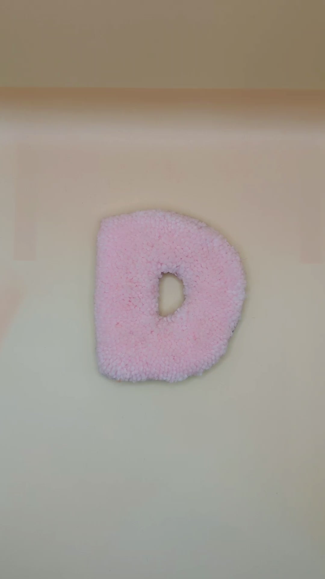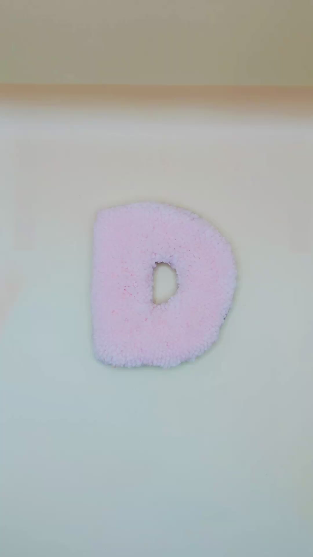 Each letter is created by me using acrylic yarn and tufted into shape; features a soft, plush textured finish and a metal hook on the back for easy hanging. It’s lightweight yet sturdy, making it simple to move and display anywhere you like — from walls and doors to shelves and gallery arrangements.