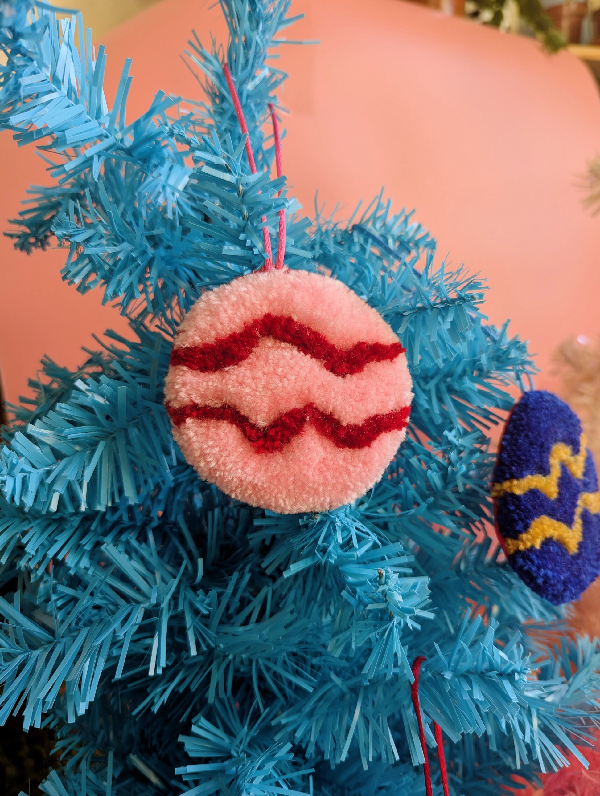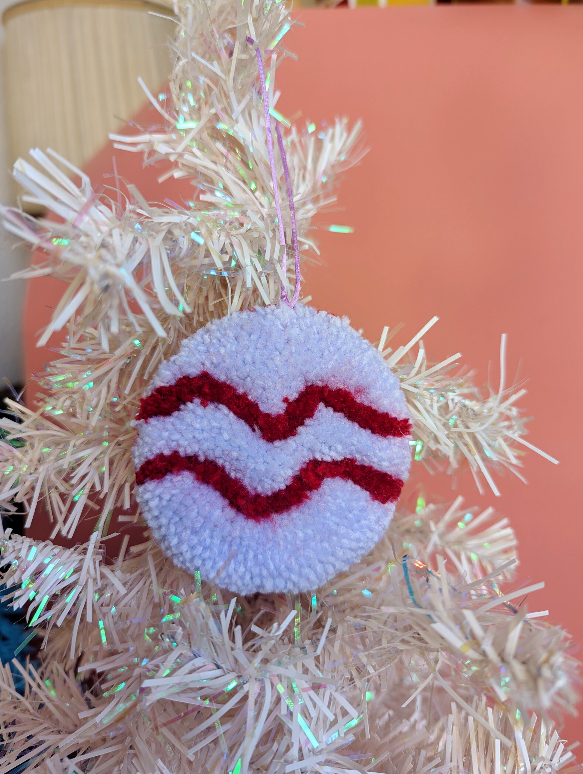 Wiggly patterned tufted Christmas decoration, perfect for the tree, the fireplace, the door or anywhere that needs a little festive lift.